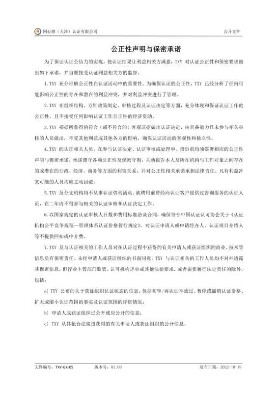 TXY-GK-05_01.00 公正性聲明與保密承諾