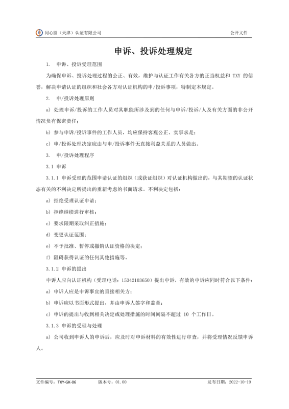 TXY-GK-06_01.00 申訴、投訴處理規(guī)定